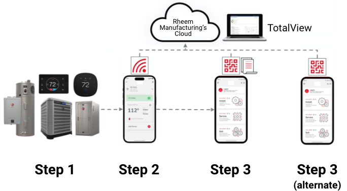 NOTE: For all equipment, access to a Rheem Family of Brands Contractor App is required for TotalView integration.