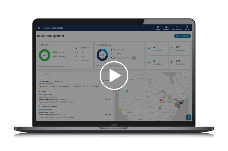 Part of the overarching EcoNet ecosystem, TotalView™ is a family of digital tools that enables near-real-time monitoring and configuration of EcoNet-connected products from anywhere you have Internet access. This platform offers a consolidated dashboard that heating & cooling and water heating Pro Partners can easily access for a complete view of all homeowners’ units and any active alerts—all powered by EcoNet technology.