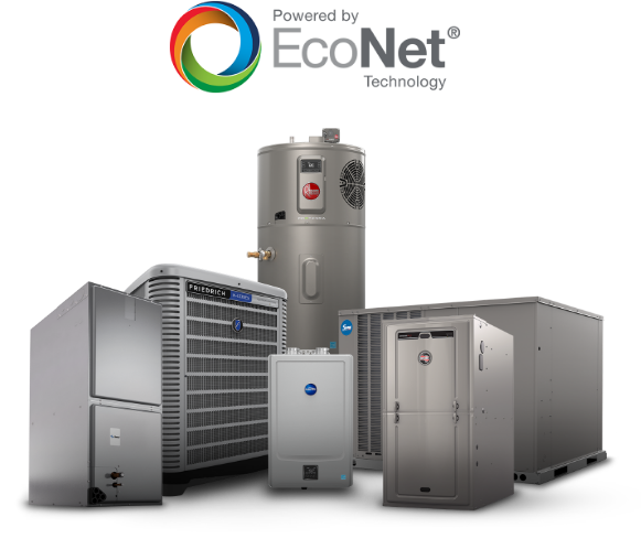 When referring to either a water heater powered by EcoNet technology or a heating & cooling product connected with the EcoNet Smart Thermostat, we say that it creates a system that’s powered by EcoNet technology.